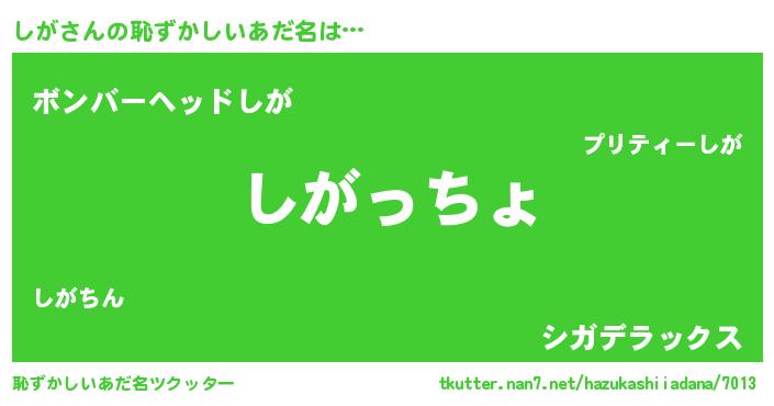 | 意味不明あだ名 | 『しがフォーエバー』『自称しが』 |