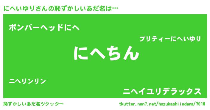 | ヘコむあだ名 | 『にへいゆり(小並感)』『にへにゅー』 |