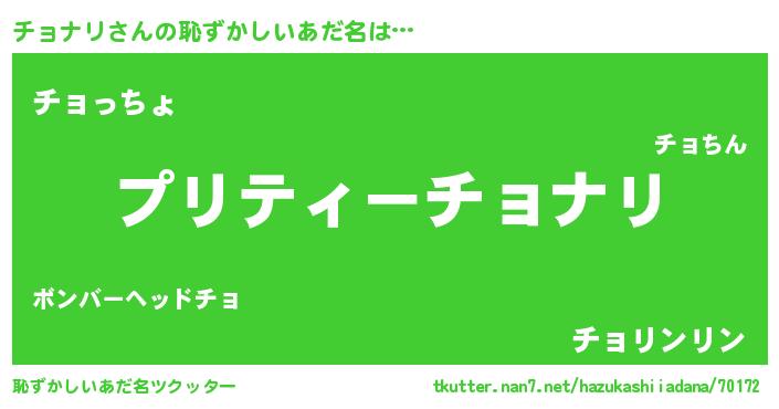 | 意味不明あだ名 | 『ペロリンチョナリ』『永久保存チョナリ』 |