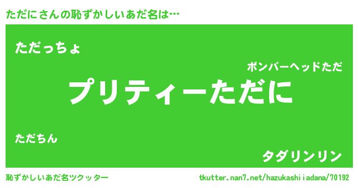| ヘコむあだ名 | 『ただにー』『酢こんぶ』 |