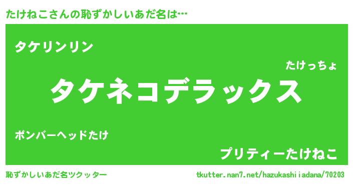 | 欧米人風あだ名 | 『ダレノガレたけねこ』 |