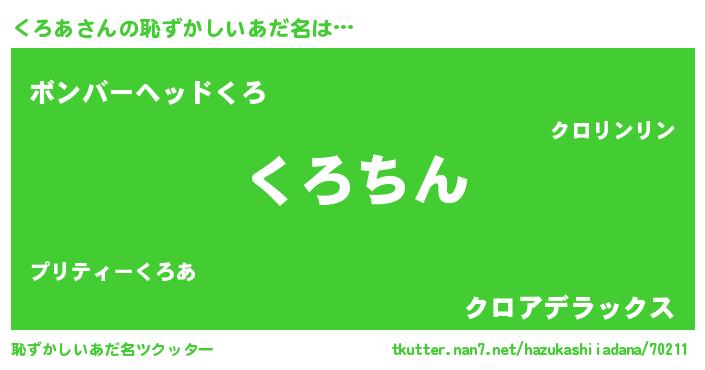 | ヒーロー風カッコイイあだ名 | 『ネオクロア』『正義の使者くろあ』 |