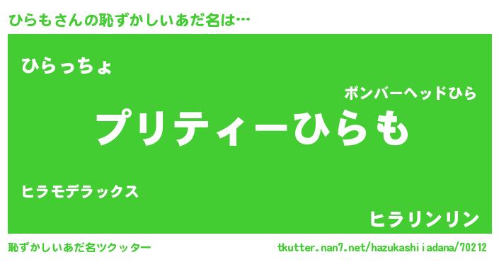 | 意味不明あだ名 | 『ペロリンひらも』『ひらもフォーエバー』 |