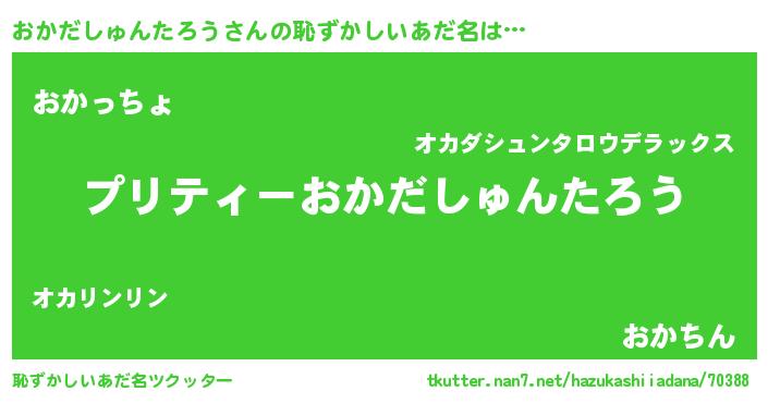 | 男性向けラノベタイトル風あだ名 | 『おかだしゅんたろうの憂鬱』 |