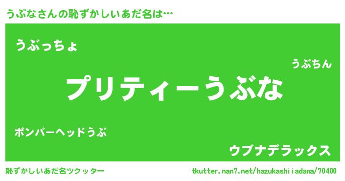 | ヒーロー風カッコイイあだ名 | 『スーパーウブナ』『仮面ウブダー』 |