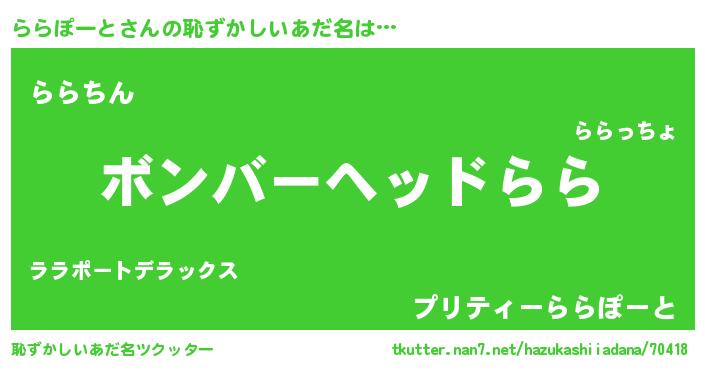 | 欧米人風あだ名 | 『アンジェラ・ららぽーと』 |