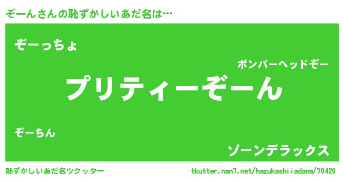 | 女子向けラノベタイトル風あだ名 | 『ぞーん姫と円卓の騎士』『闇のぞーん』 |