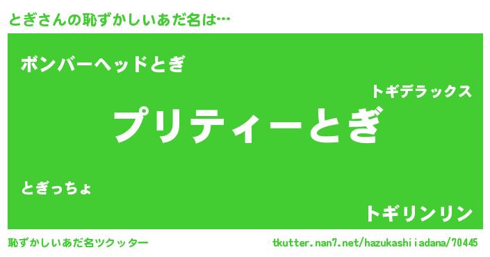 | ヘコむあだ名 | 『とぎにー』『とぎお』『豆乳』 |