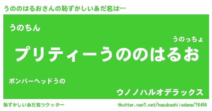 | ヘコむあだ名 | 『うのにー』『うののはるお(爆)』 |
