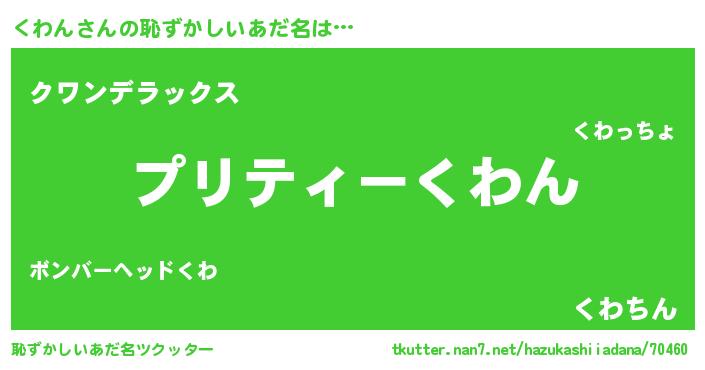 | 意味不明あだ名 | 『住所不定無職くわん(12歳)』『自称くわん』 |