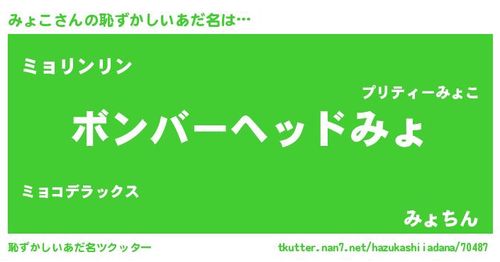 | ヘコむあだ名 | 『みょっ子』『みょこ(笑)』『豆乳』 |