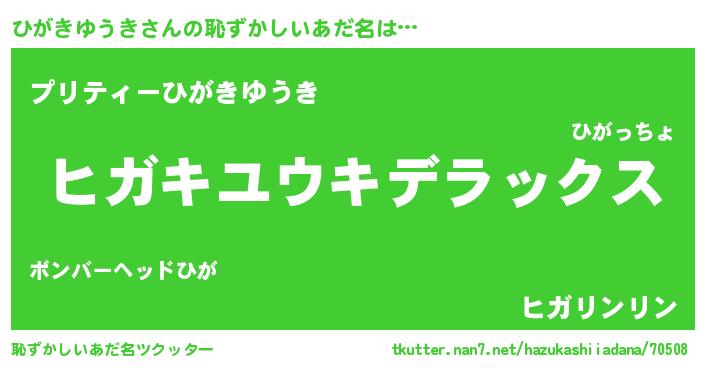 | 女子向けラノベタイトル風あだ名 | 『ひがきゆうきなんてお断りですっ。』 |