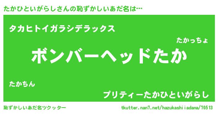 | ヘコむあだ名 | 『たかもー』『豆乳』『たかを』 |