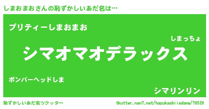 | 意味不明あだ名 | 『自称しまおまお』『ペロリンしまおまお』 |