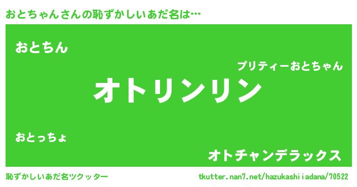 | 男性向けラノベタイトル風あだ名 | 『おとちゃんの嫁は女の子じゃないと思った?』 |