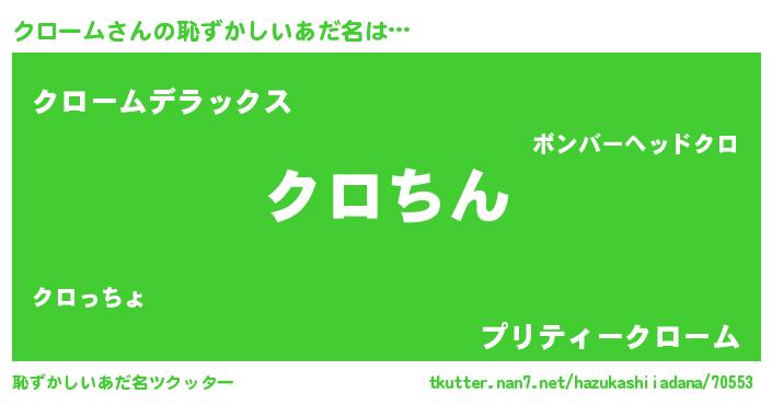| 男性向けラノベタイトル風あだ名 | 『誰もが恐れるあのクロームが、ぼくの専属メイドになるようです。』 |