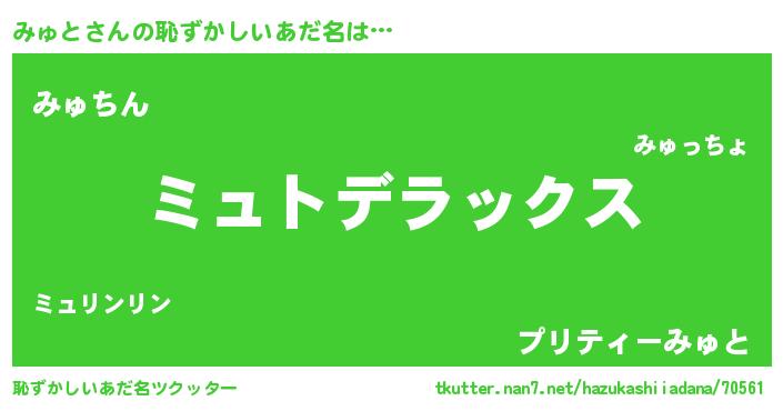 | 意味不明あだ名 | 『自称みゅと』『永久保存みゅと』 |