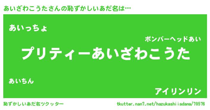 | 男性向けラノベタイトル風あだ名 | 『アイザワコウタアートオンライン』 |