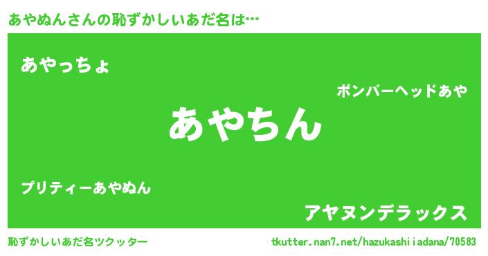| 意味不明あだ名 | 『永久保存あやぬん』『自称あやぬん』 |