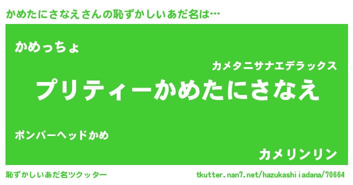 | 男性向けラノベタイトル風あだ名 | 『カメタニサナエアートオンライン』 |
