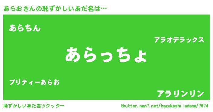 | ヒーロー風カッコイイあだ名 | 『ウルトラあらおマン』『ネオアラオ』 |