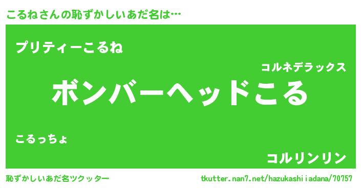 | ヒーロー風カッコイイあだ名 | 『天空の使者こるね』『スーパーコルネ』 |