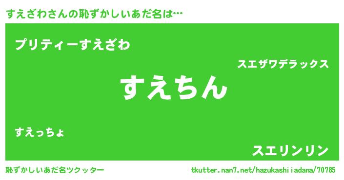 | 男性向けラノベタイトル風あだ名 | 『すえざわに滅ぼされるだけの簡単なお仕事です』 |