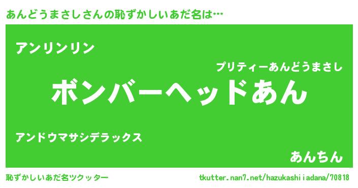 | 意味不明あだ名 | 『眠気覚ましガムあんどうまさし味』 |