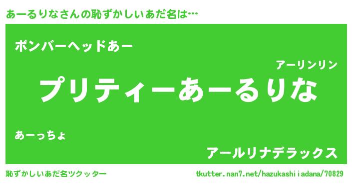 | 意味不明あだ名 | 『住所不定無職あーるりな(74歳)』 |