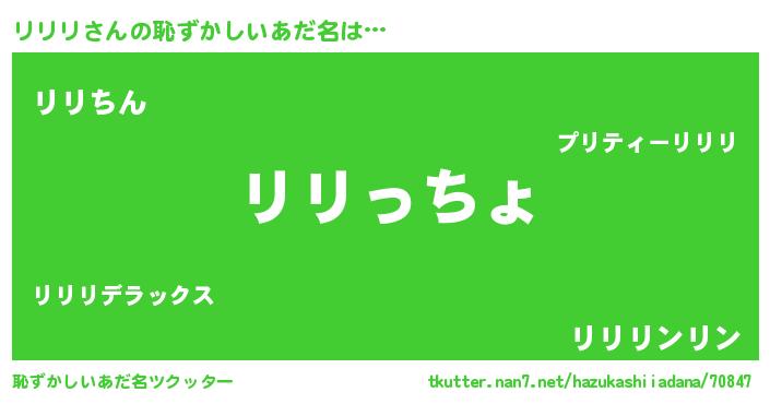 | ヘコむあだ名 | 『つくし』『リリリ(笑)』『リリっ子』 |