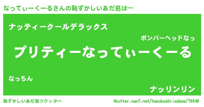| 男性向けラノベタイトル風あだ名 | 『なってぃーくーるの憂鬱』 |