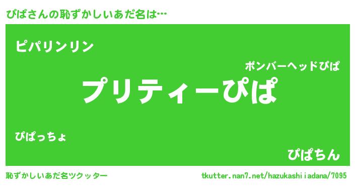 | 男性向けラノベタイトル風あだ名 | 『この素晴らしい世界にぴぱを!』 |