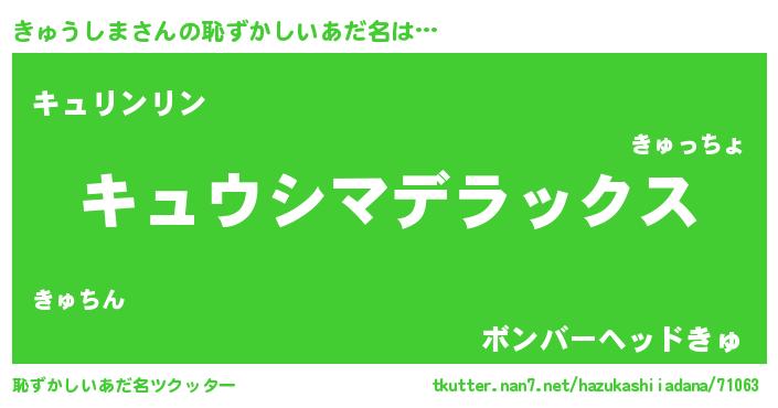 | 意味不明あだ名 | 『自称きゅうしま』『永久保存きゅうしま』 |