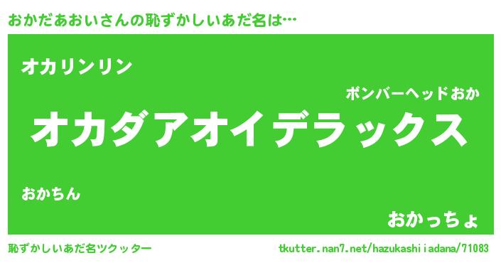 | 女子向けラノベタイトル風あだ名 | 『おかだあおいなんてお断りですっ。』 |