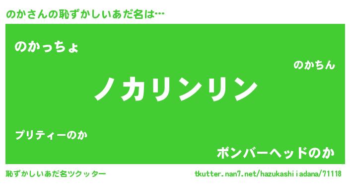 | ヘコむあだ名 | 『のかっぺ』『つくし』『のかにー』 |