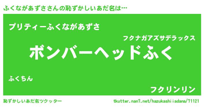 | 男性向けラノベタイトル風あだ名 | 『フクナガアズサスレイヤー』 |