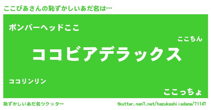 | 男性向けラノベタイトル風あだ名 | 『この素晴らしい世界にここびあを!』 |