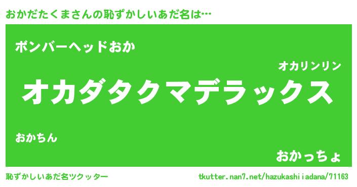 | 意味不明あだ名 | 『住所不定無職おかだたくま(71歳)』 |
