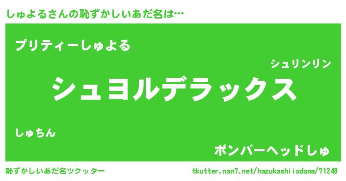 | 意味不明あだ名 | 『自称しゅよる』『ペロリンしゅよる』 |