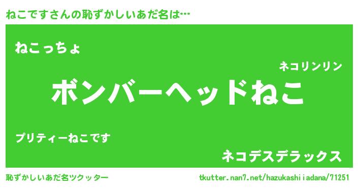 | ヒーロー風カッコイイあだ名 | 『天空の使者ねこです』『仮面ネコダー』 |