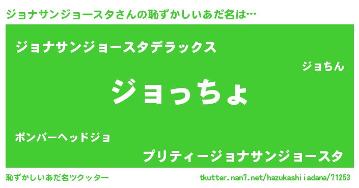 | 欧米人風あだ名 | 『ジョナサンジョースタクリステル』 |