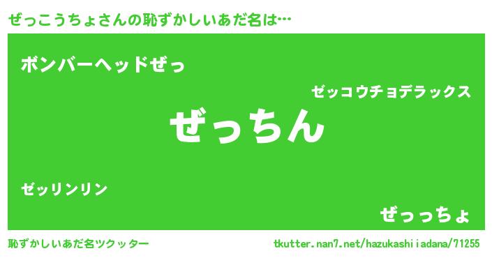 | 男性向けラノベタイトル風あだ名 | 『ぜっこうちょという概念が存在しない退屈な世界 』 |