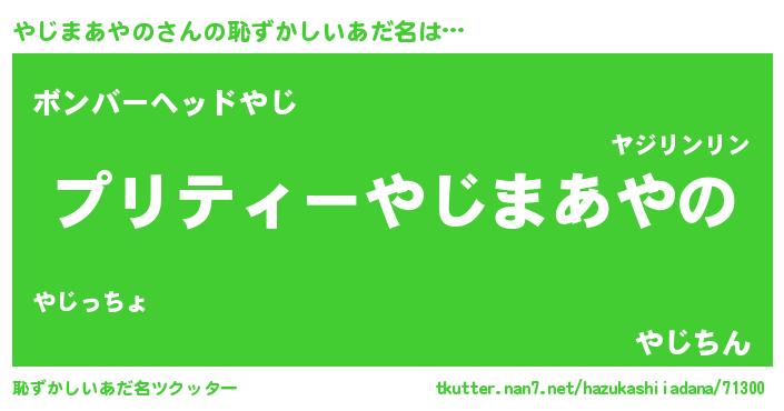 | ヒーロー風カッコイイあだ名 | 『仮面ヤジダー』『スーパーヤジマアヤノ』 |