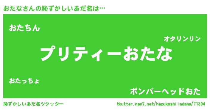 | 男性向けラノベタイトル風あだ名 | 『転生したらおたなだった件』 |