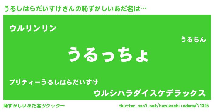 | 意味不明あだ名 | 『うるしはらだいすけフォーエバー』 |