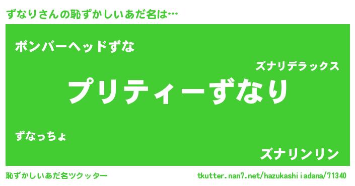 | 意味不明あだ名 | 『ペロリンずなり』『自称ずなり』 |