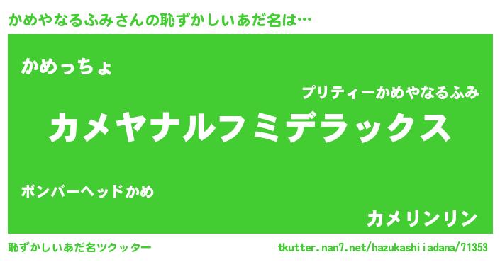 | 意味不明あだ名 | 『自称かめやなるふみ』 |