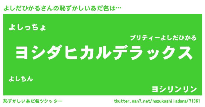 | 意味不明あだ名 | 『自称よしだひかる』 |