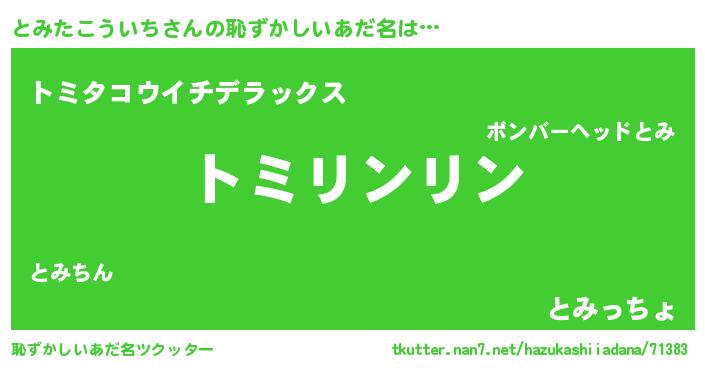 | 男性向けラノベタイトル風あだ名 | 『うちのとみたこういちが世界を掌握している!』 |