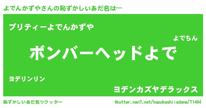 | ヘコむあだ名 | 『よでふぇ~』『よでんかずや(遠い目)』 |